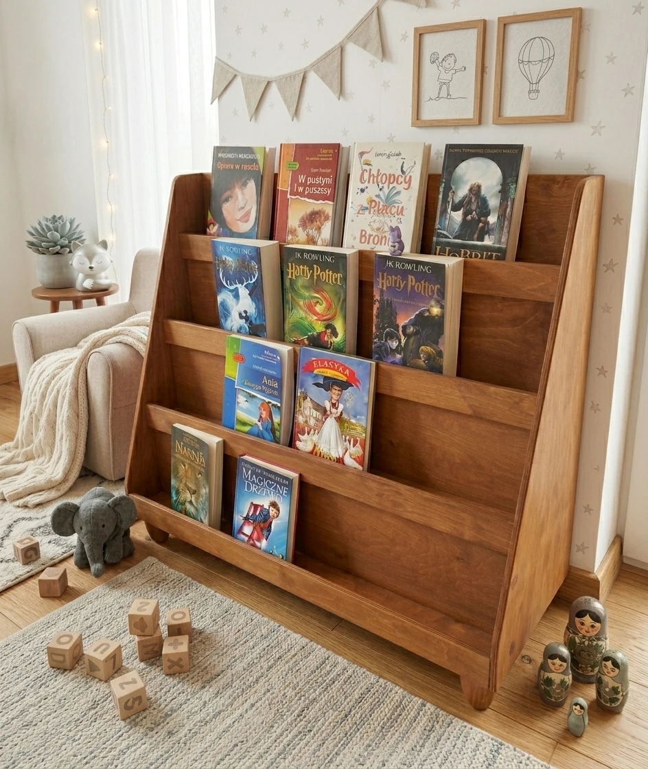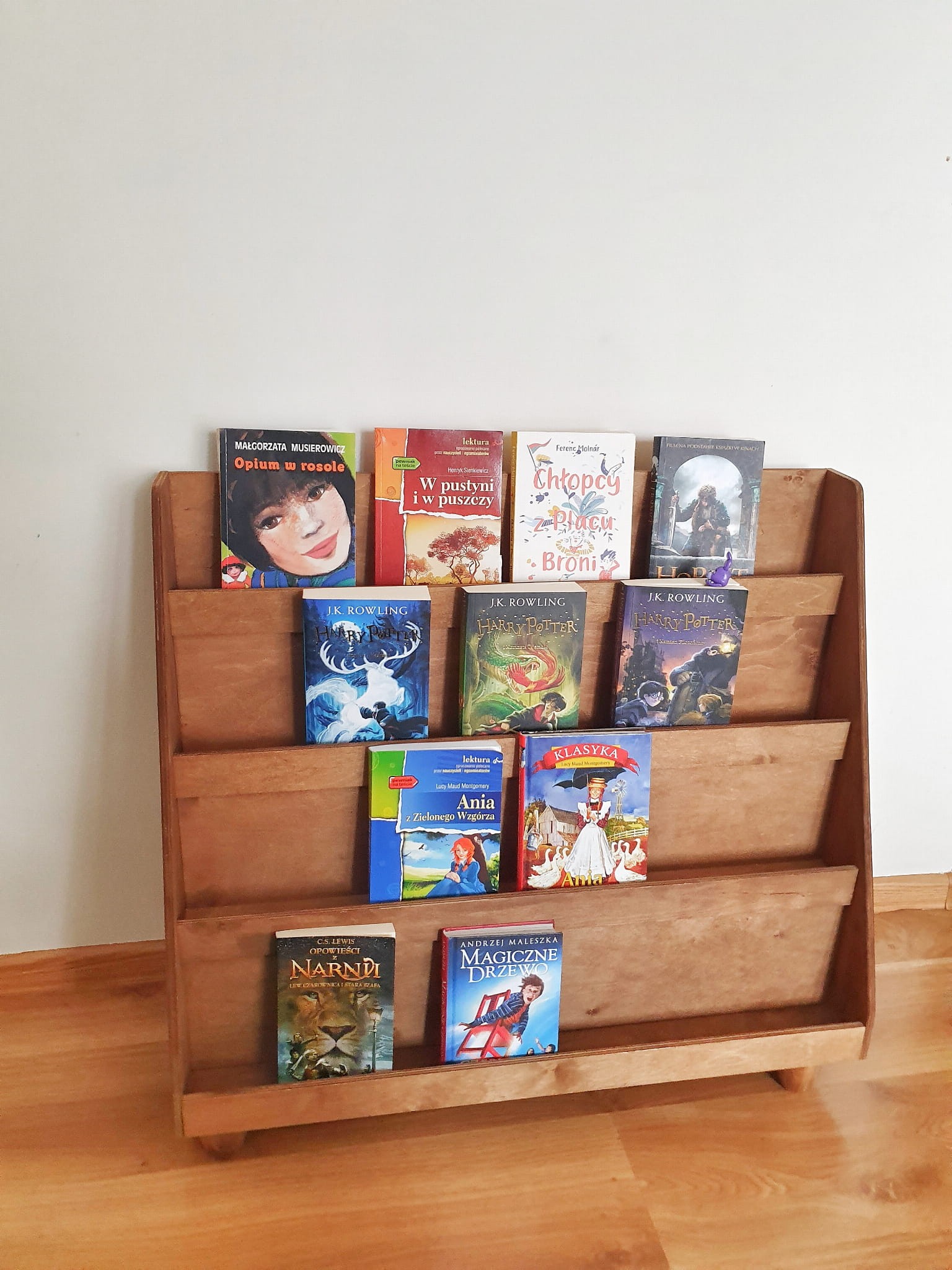 Biblioteczka drewniana stojąca na książki z nóżkami