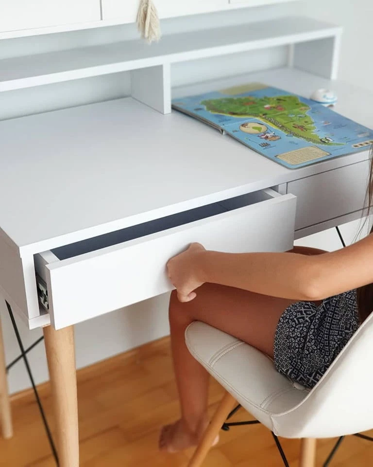 Biurko dziecięce białe matowe z szufladkami