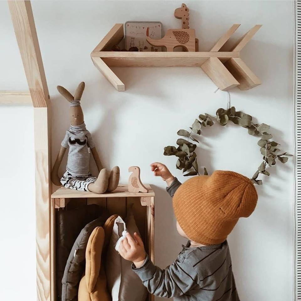 Drewniana półka w kształcie strzały.