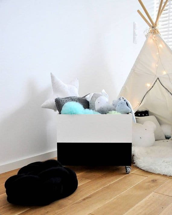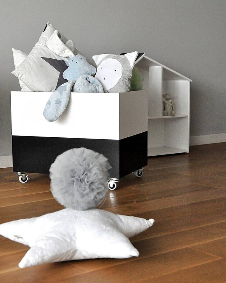Drewniana skrzynia pojemnik na zabawki "Biało czarna"