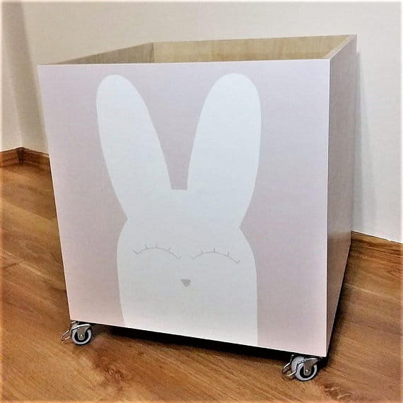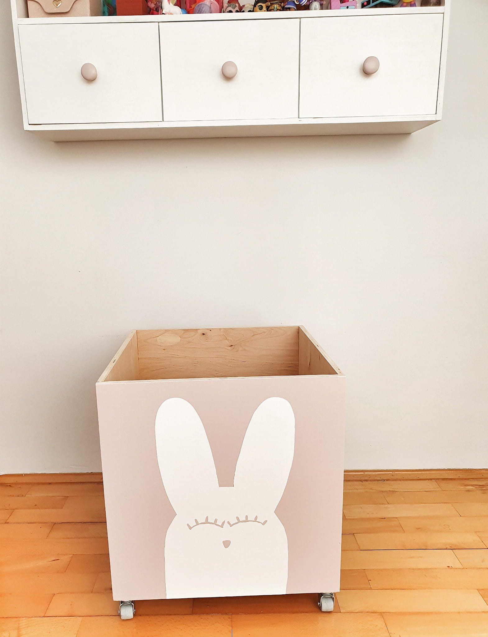 Drewniana skrzynia pojemnik na zabawki "Króliczek pudrowy"