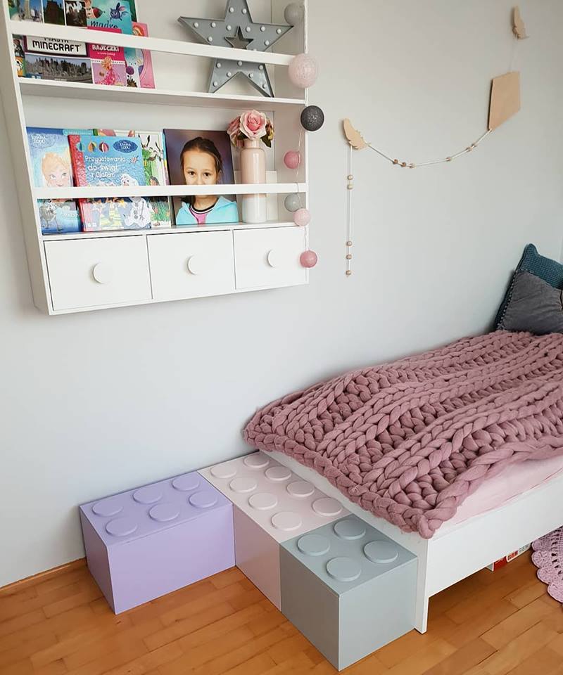 Drewniana skrzynka na zabawki w kształcie klocka Lego duża pudrowy róż