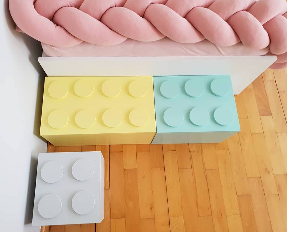 Drewniana skrzynka na zabawki w kształcie klocka Lego średnia miętowa
