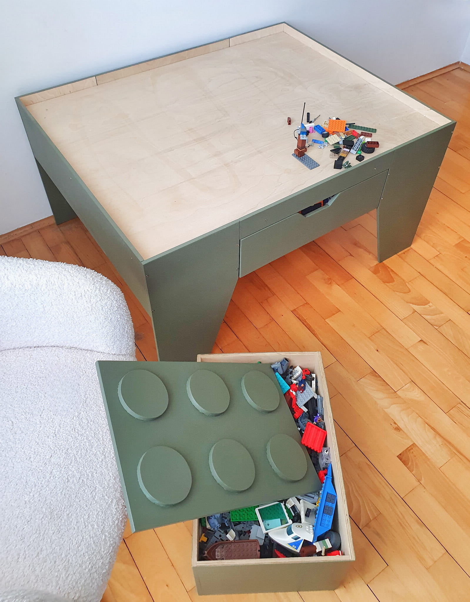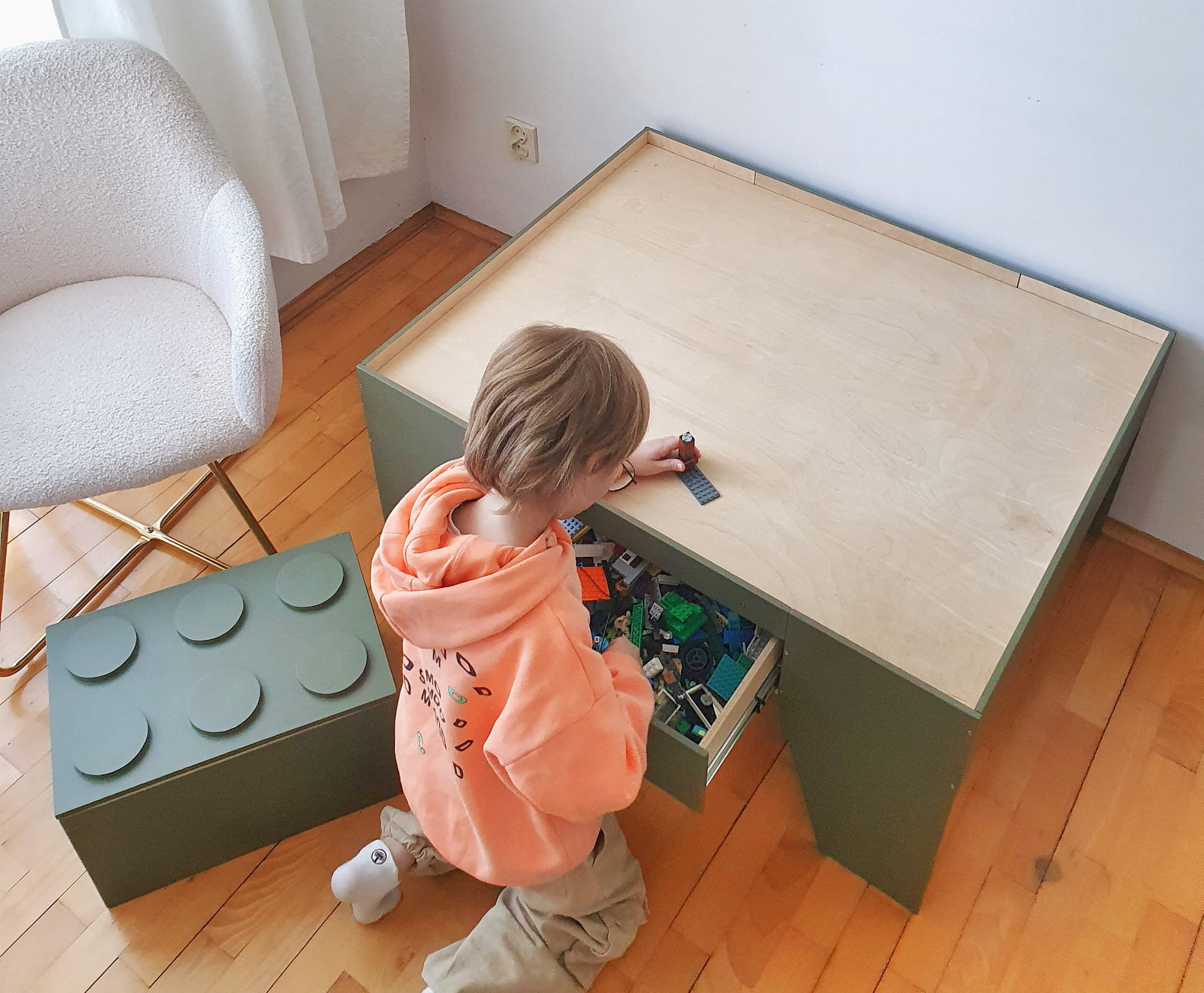 Drewniana skrzynka na zabawki w kształcie klocka Lego średnia zielona