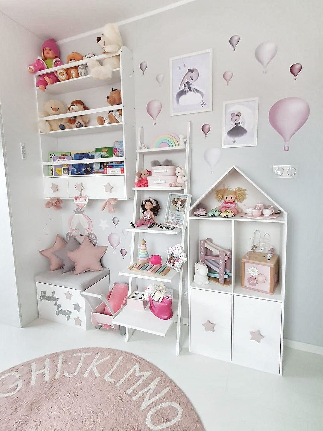 Półka regał na książki i zabawki w kształcie domku wykonany z drewnianej sklejki sosnowej. Regał pomalowany w kolorze białym wodorozcieńczalną emalią akrylową rekomendowaną przez Polskie Towarzystwo Alergologiczne bezpieczne i przeznaczone dla najmłodszych. Regał posiada 2 szuflady z drewnianymi uchwytami gwiazdkami w kolorze pudrowego różu.