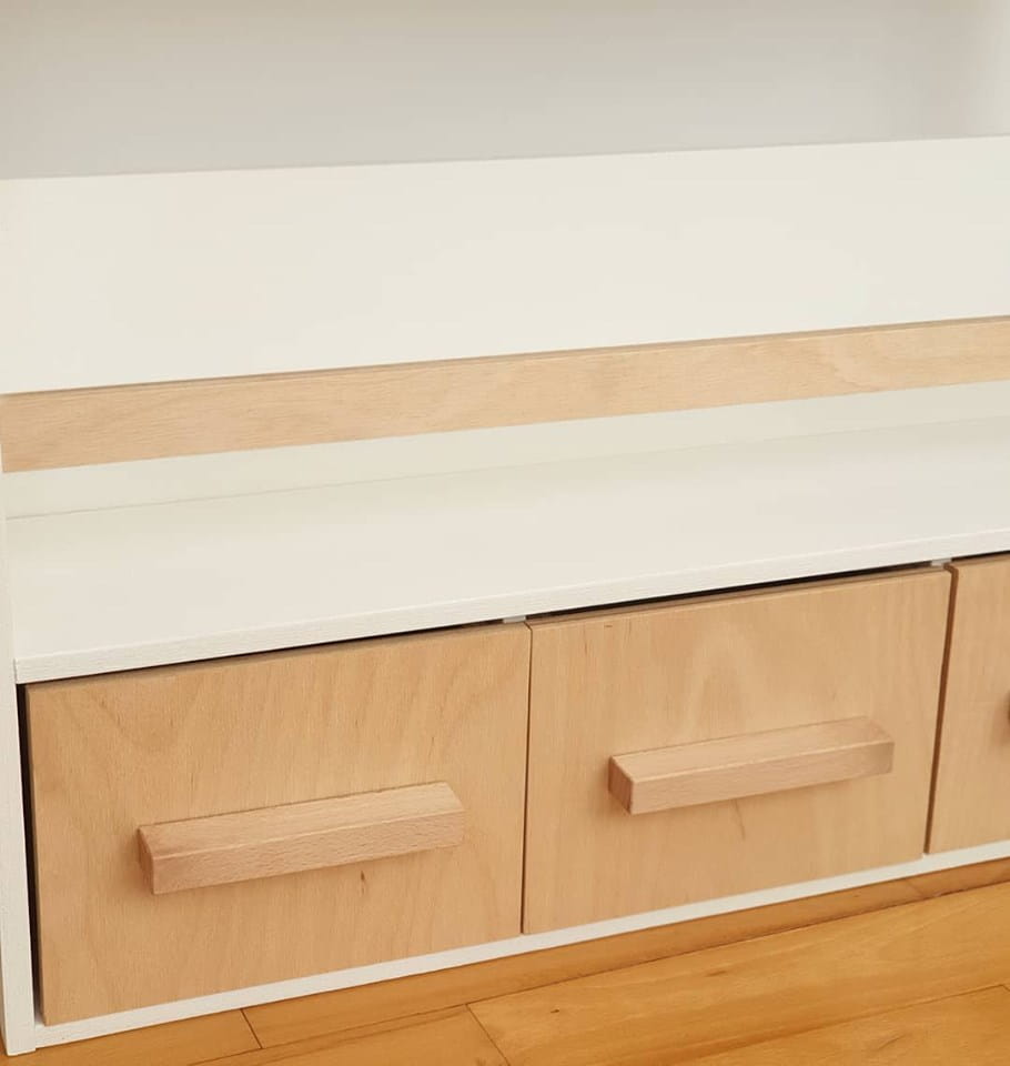 Możliwość wymalowania regału na dowolny kolor oraz wykonania innego kształtu uchwytów.