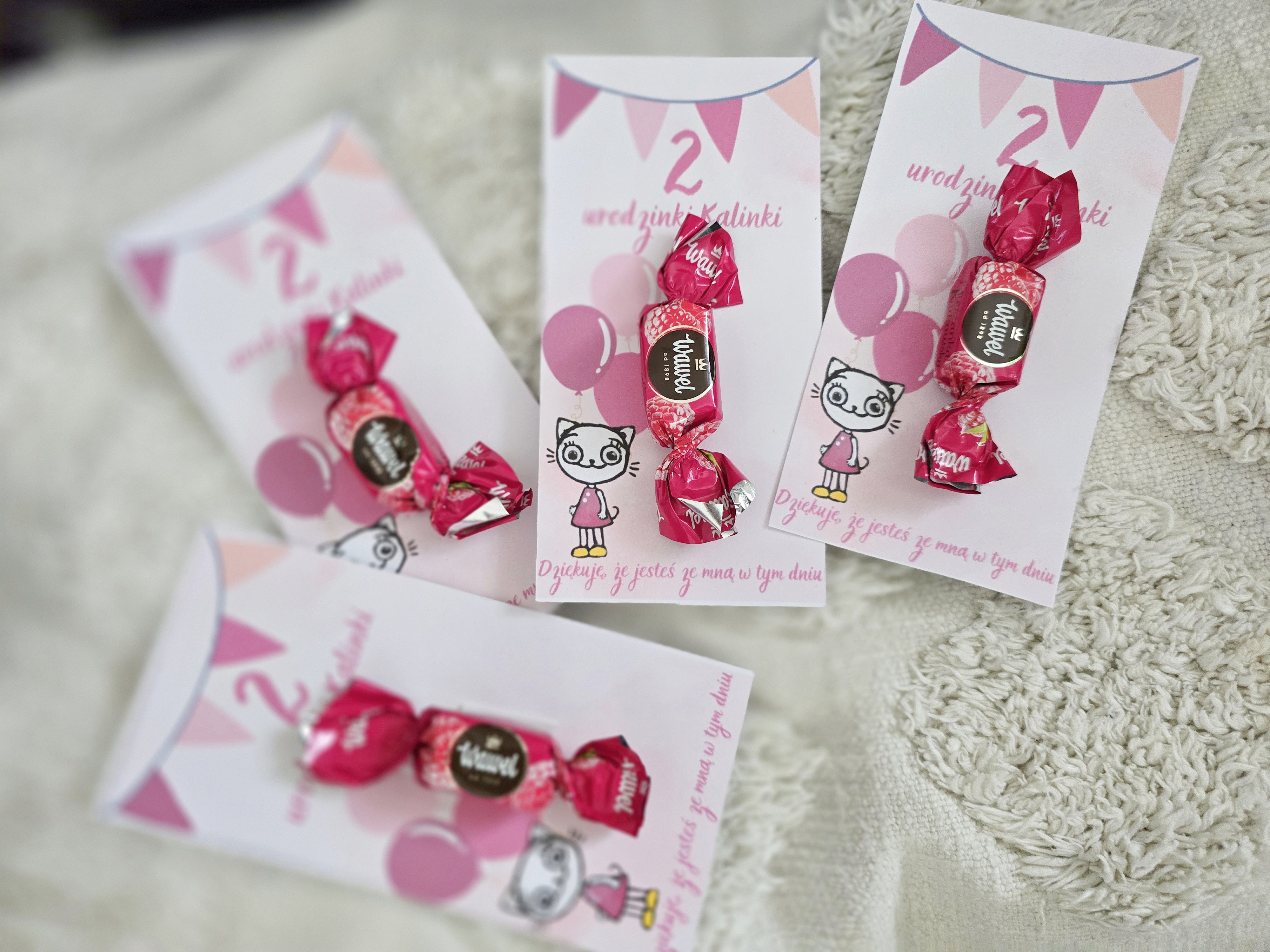 Karteczka podziękowanie urodzinowe Kicia Kocia różowe