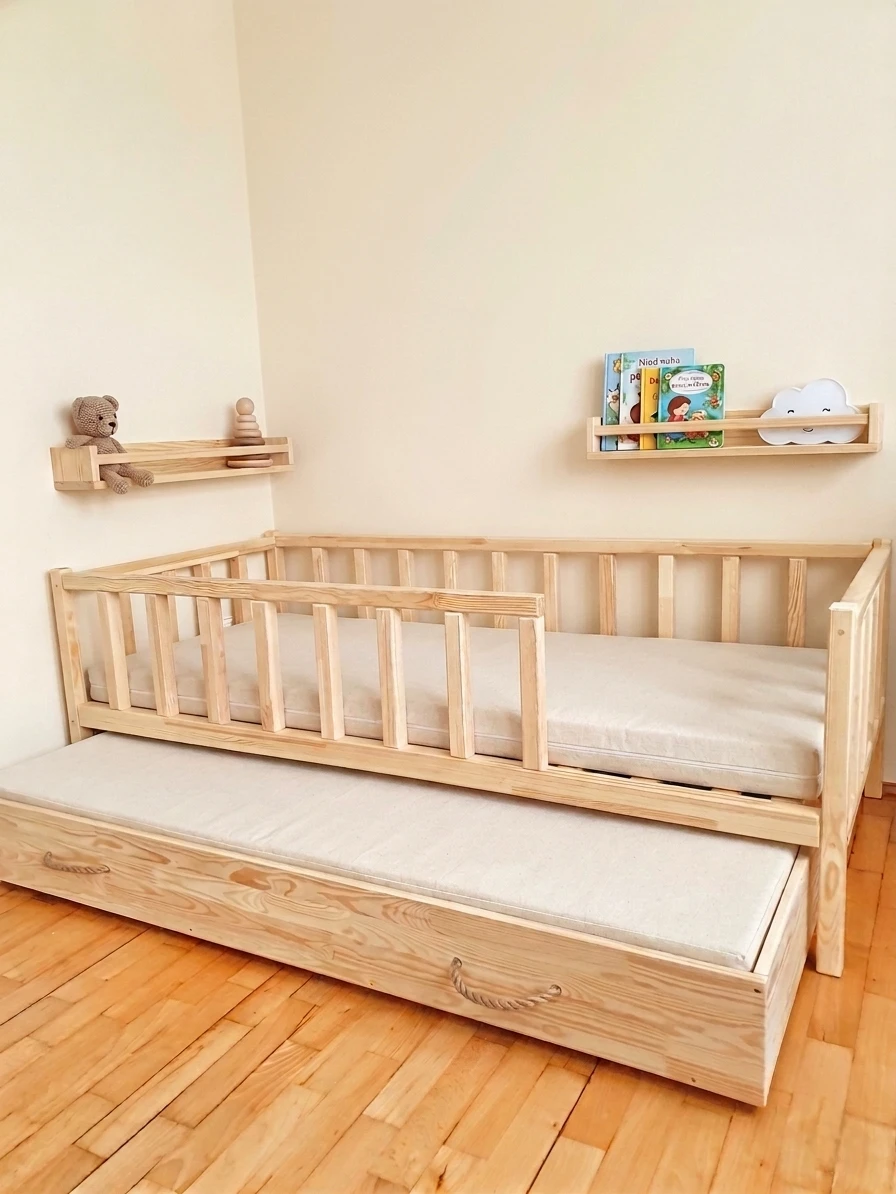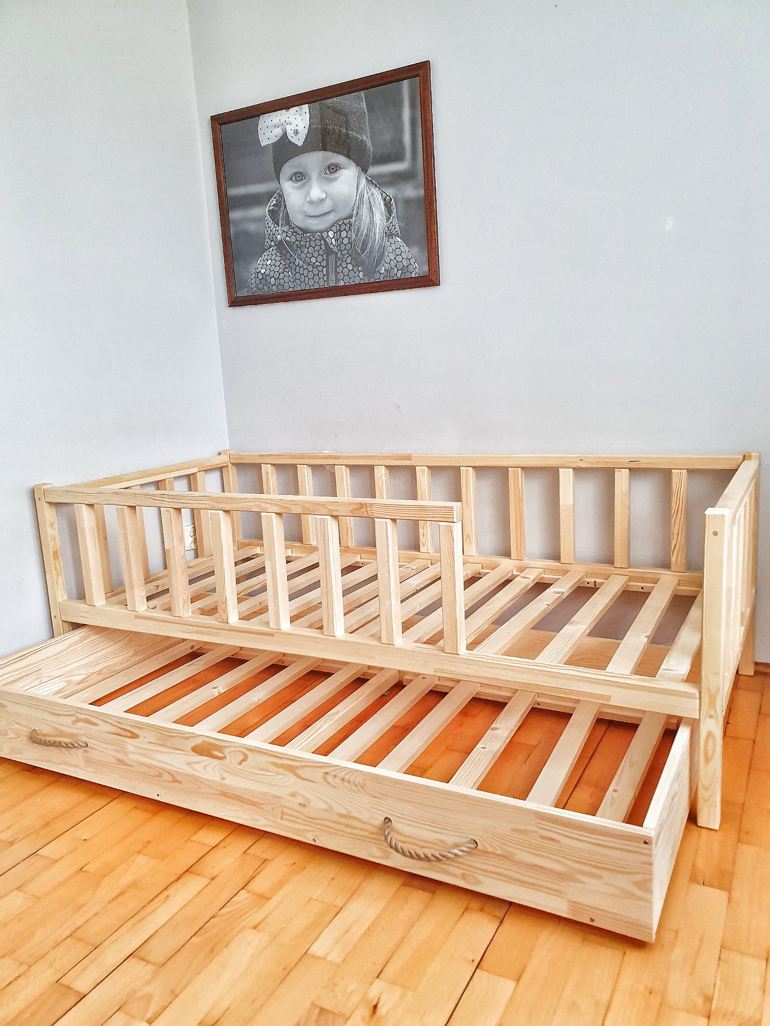 Łóżko dziecięce drewniane z szufladą z opcją spania -warianty
