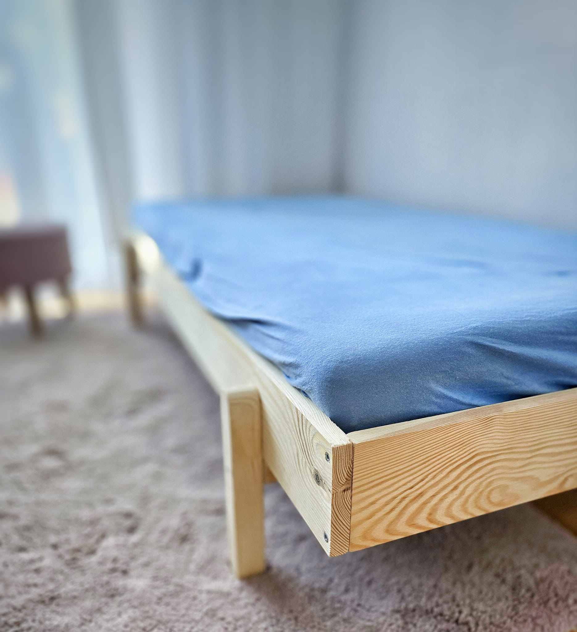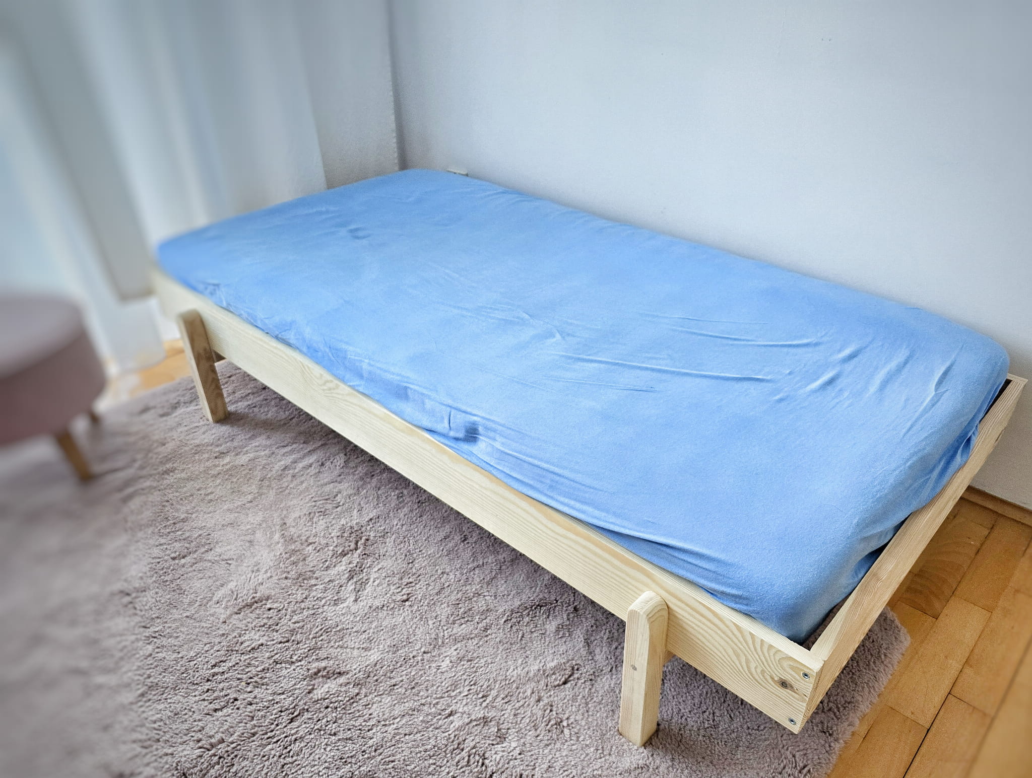Łóżko wykonane z drewna sosnowego pomalowane matowym bezbarwnym lakierem Z DREWNIANYM STELAŻEM W CENIE.