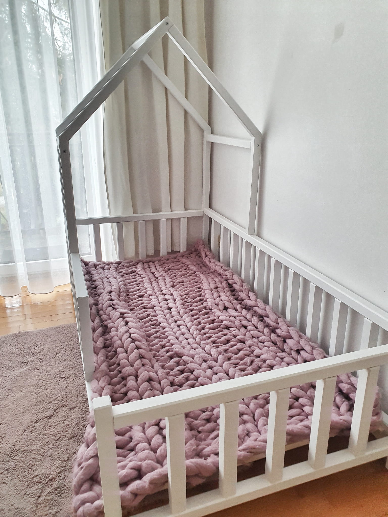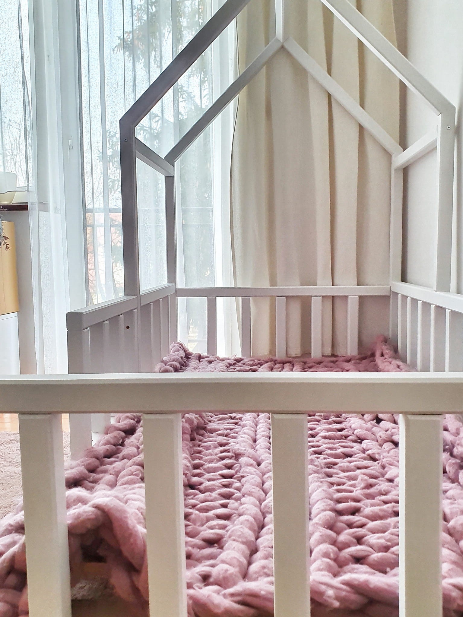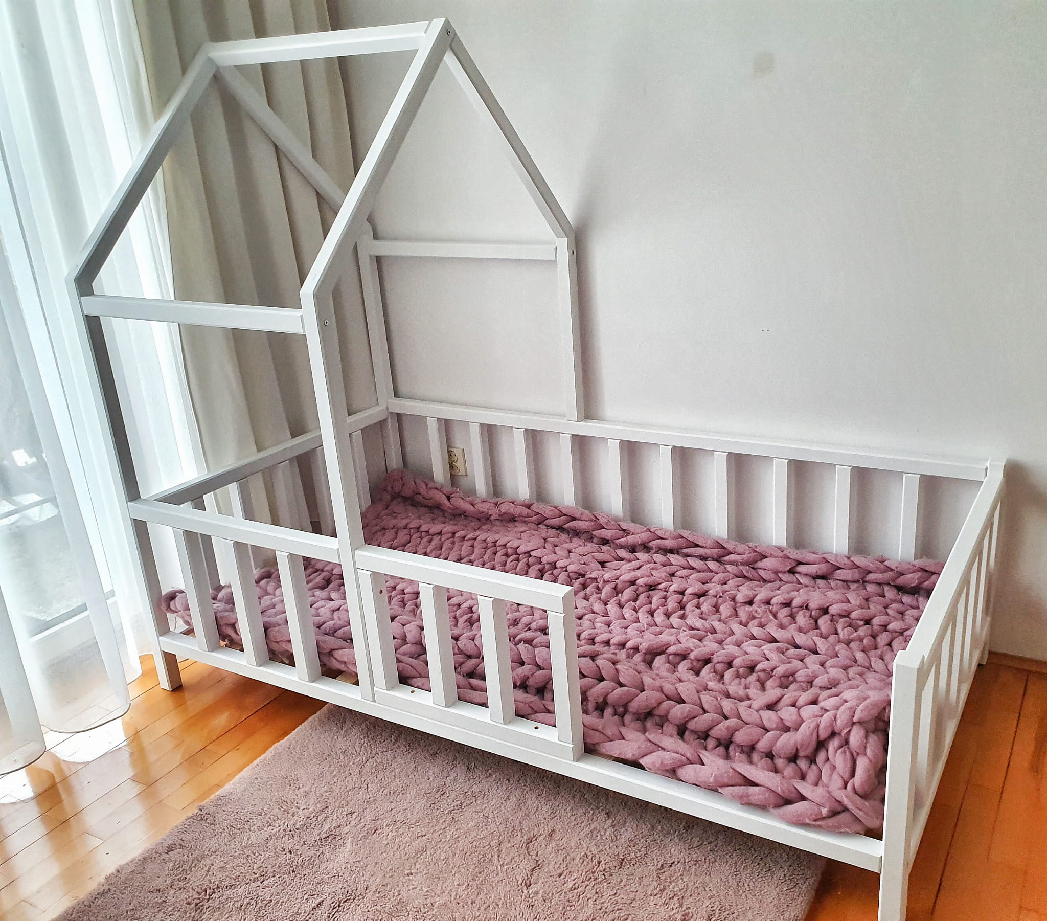 Łóżko wykonane z drewna sosnowego pomalowane białą Ekologiczną Emalią Akrylową bezpieczną i przeznaczoną dla dzieci Z DREWNIANYM STELAŻEM W CENIE. Łóżko posiada barierki zabezpieczające wokół łóżka. Belki łagodnie wyfrezowane, które eliminują ostre krawędzie. BARIERKA PRZEDNIA KRÓTKA LUB PRZEDŁUŻANA. CZĘŚĆ PRZEDŁUŻANA ZA SŁUPKIEM JEST DEMONTOWALNA.