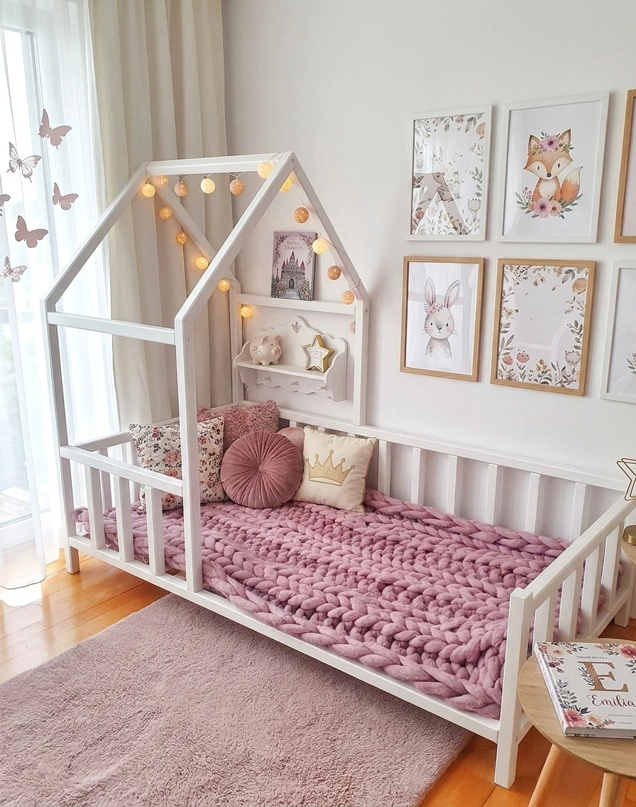 Łóżko z szkieletem domku