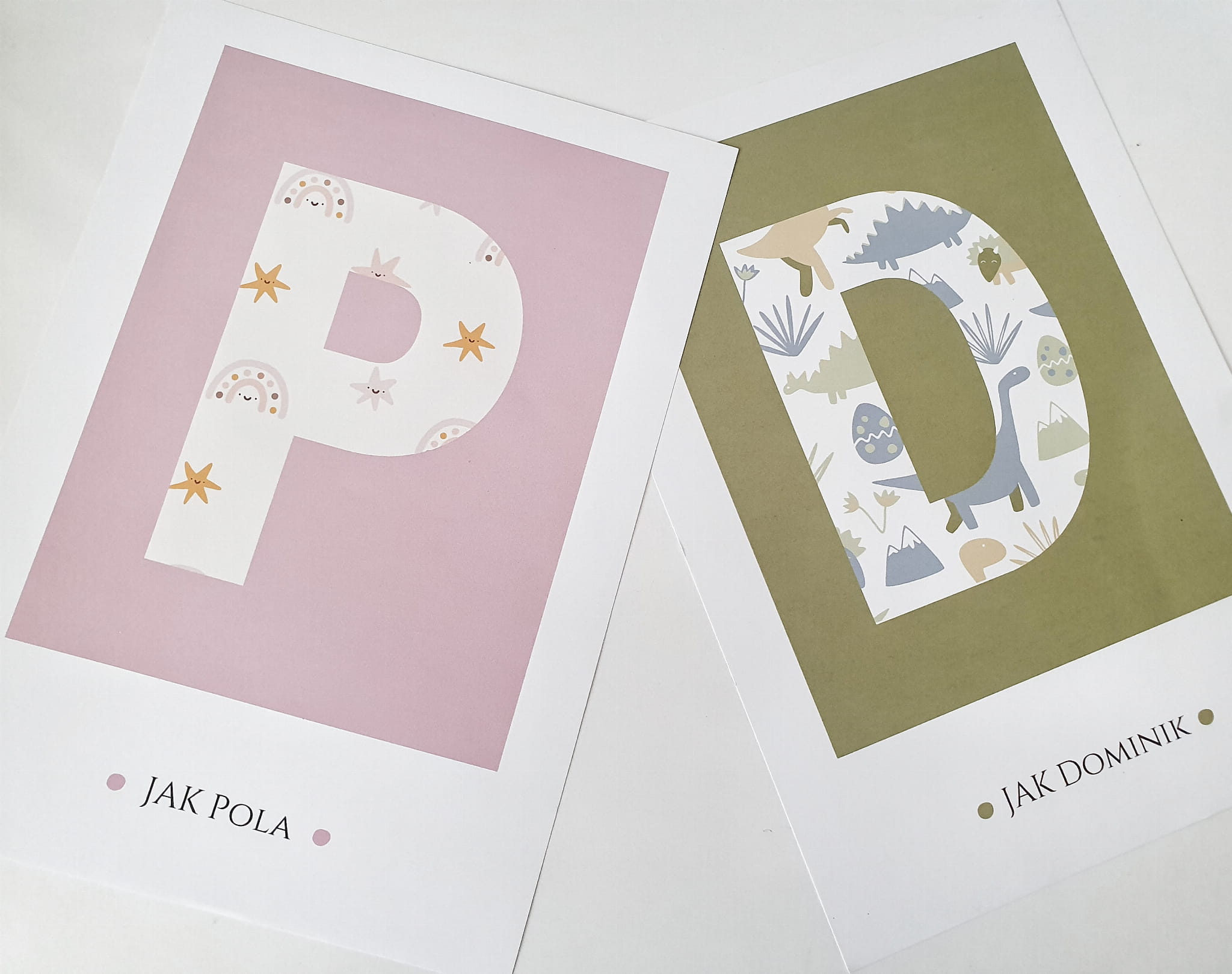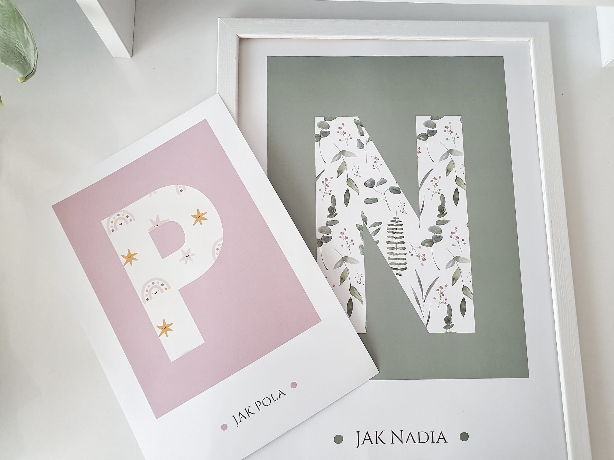 Plakat dziecięcy literka P z motywem tęczy i gwiazdek