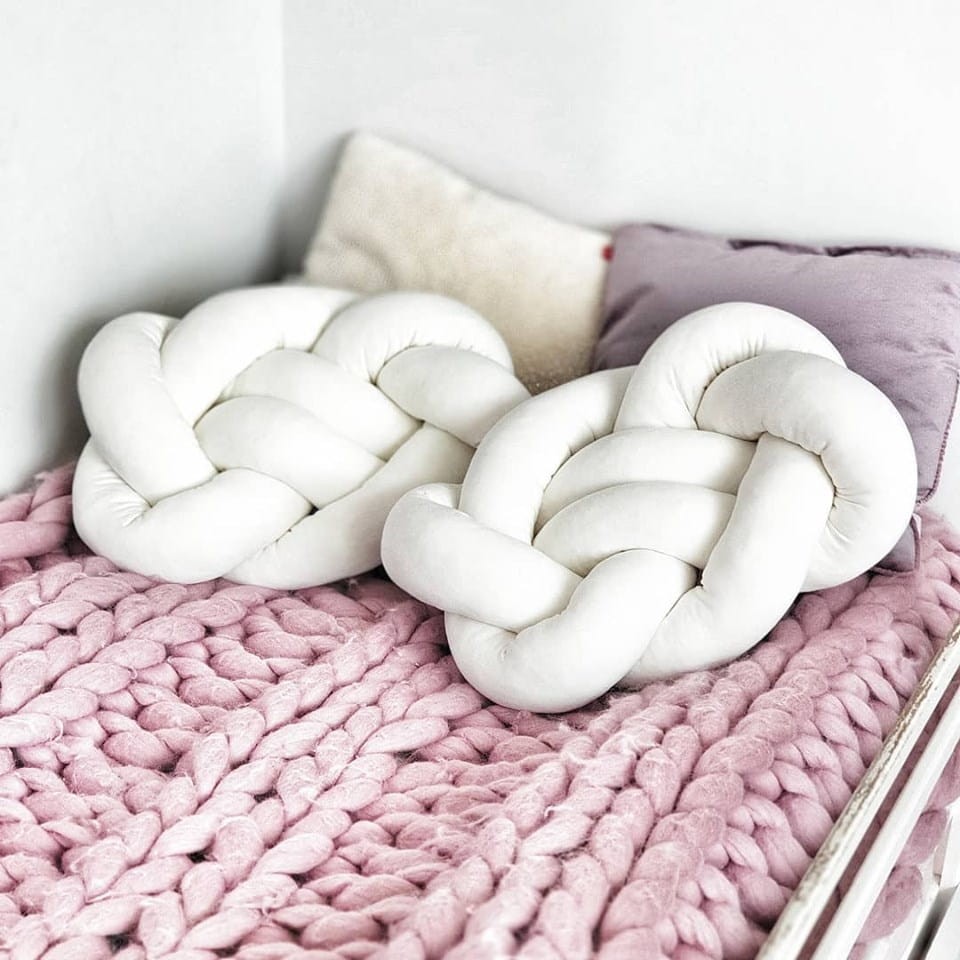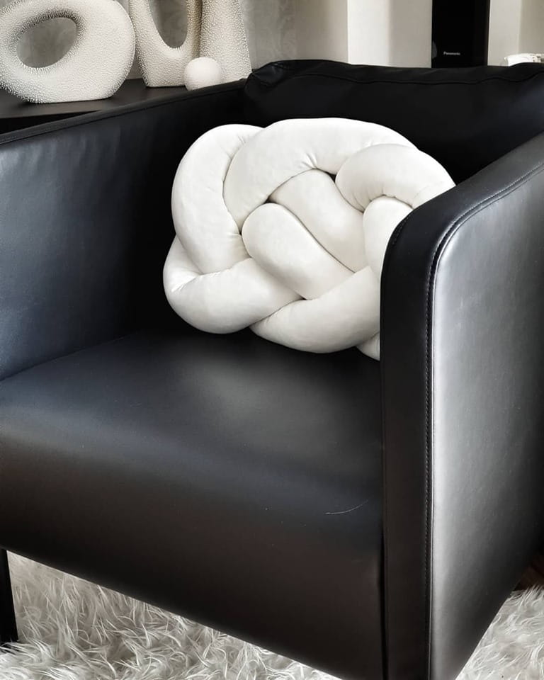Poduszka supeł o grubym splocie w kolorze ecru.