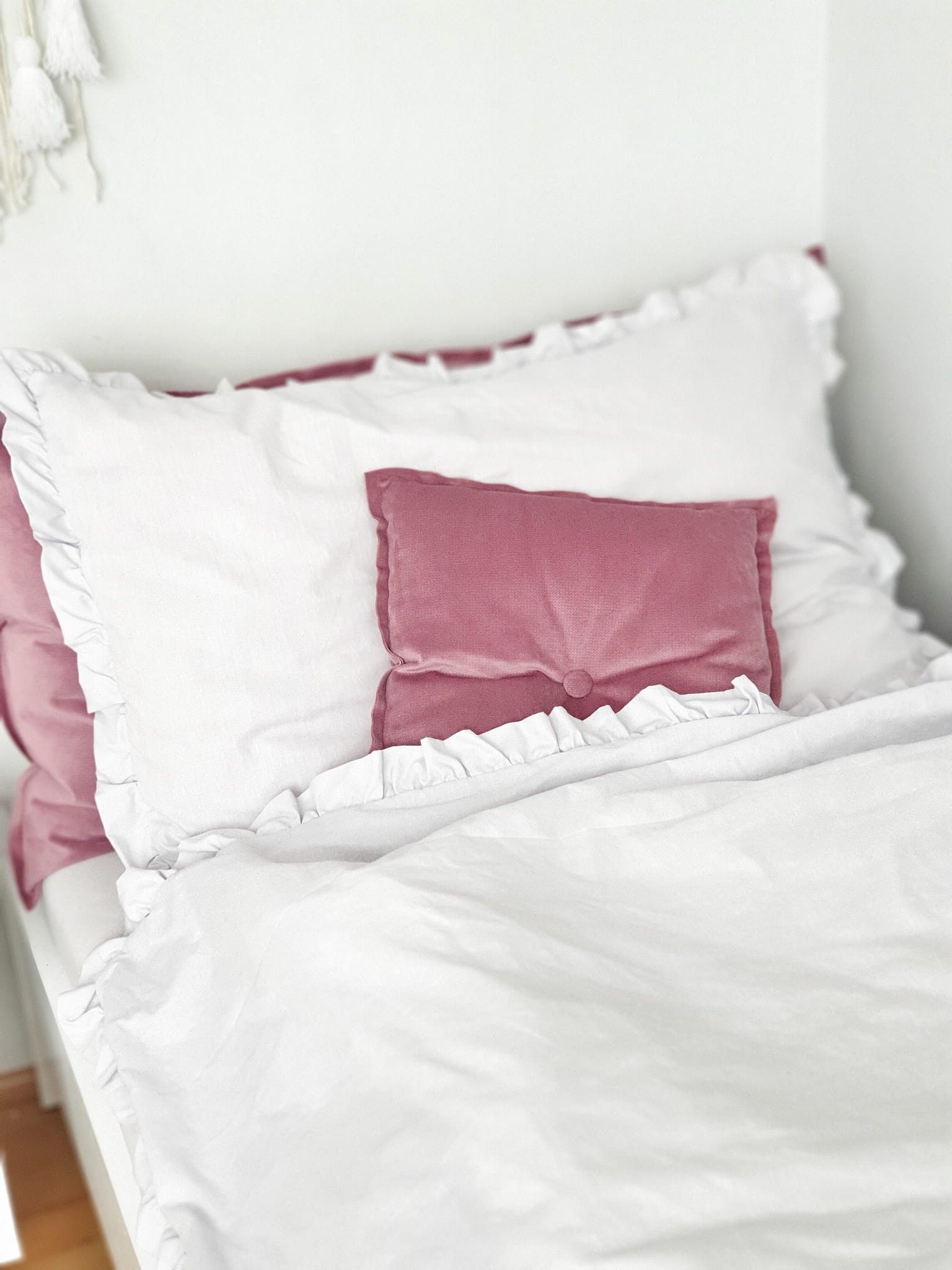 Poduszka velvetowa w kolorze brudnego różu.