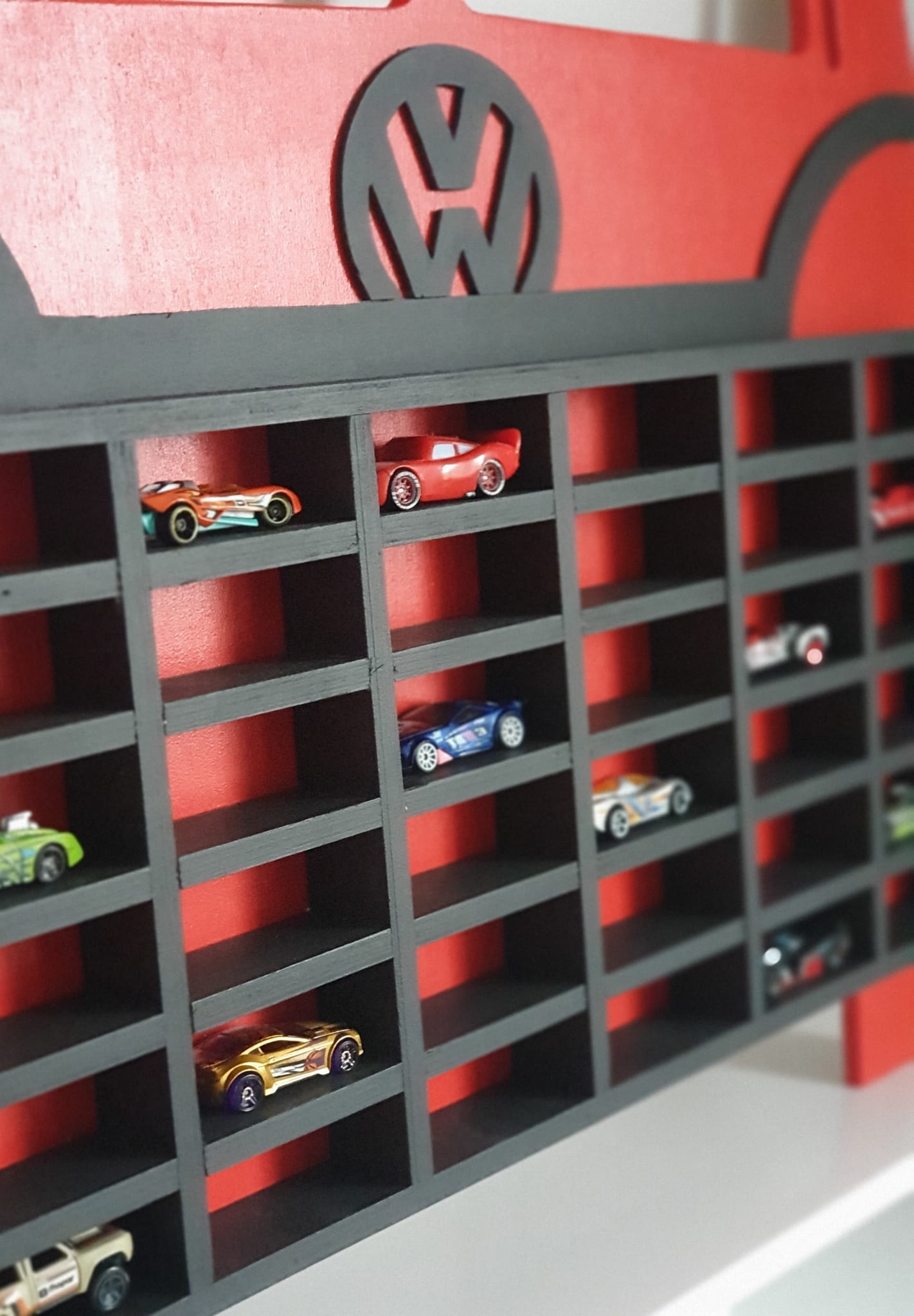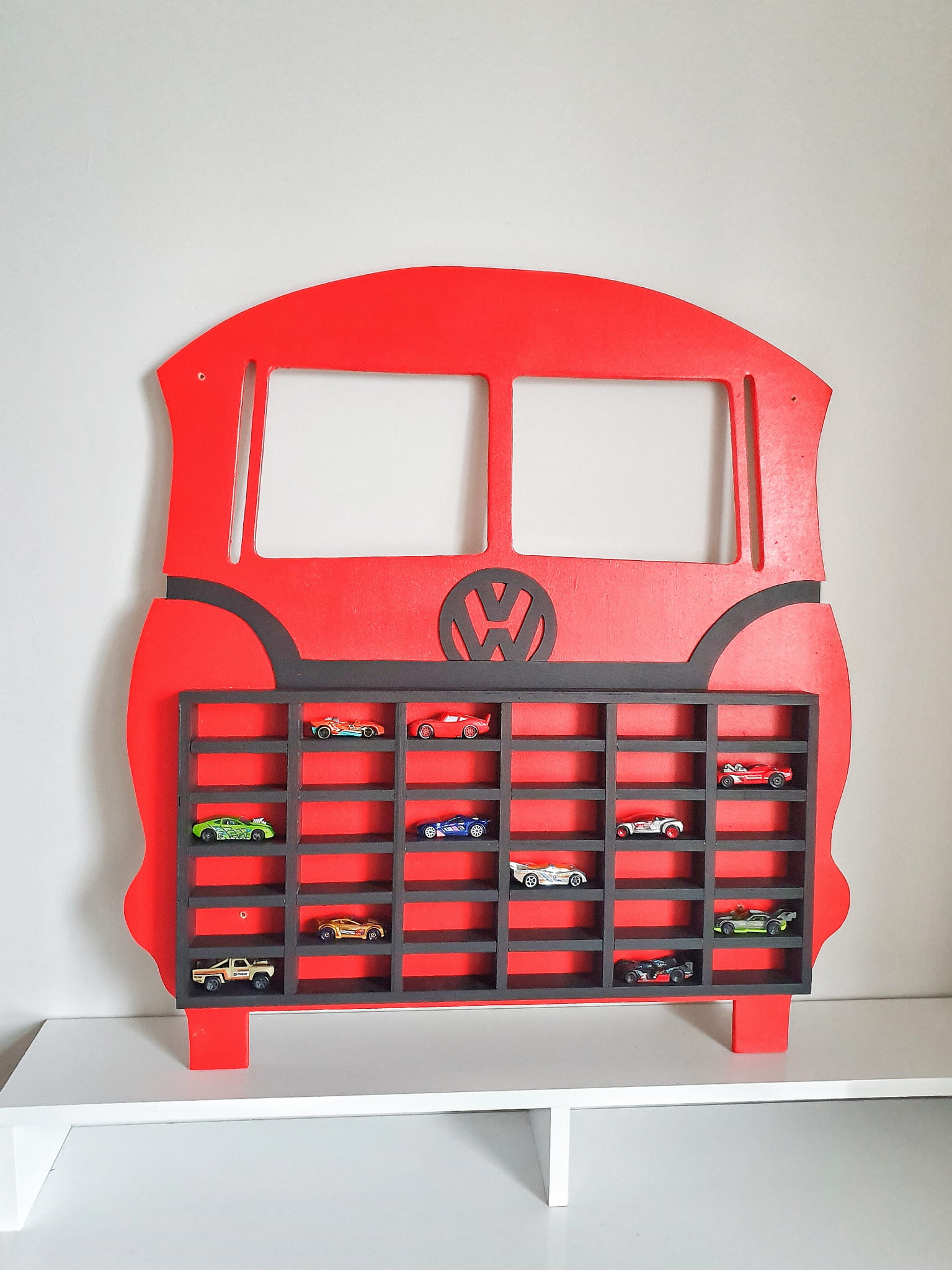 Półka drewniana na resoraki czerwono czarna