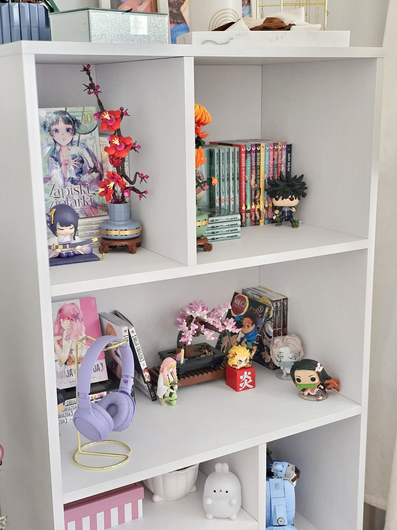 Regał biały na książki dla dzieci z przegródkami i ryflowaną szufladą