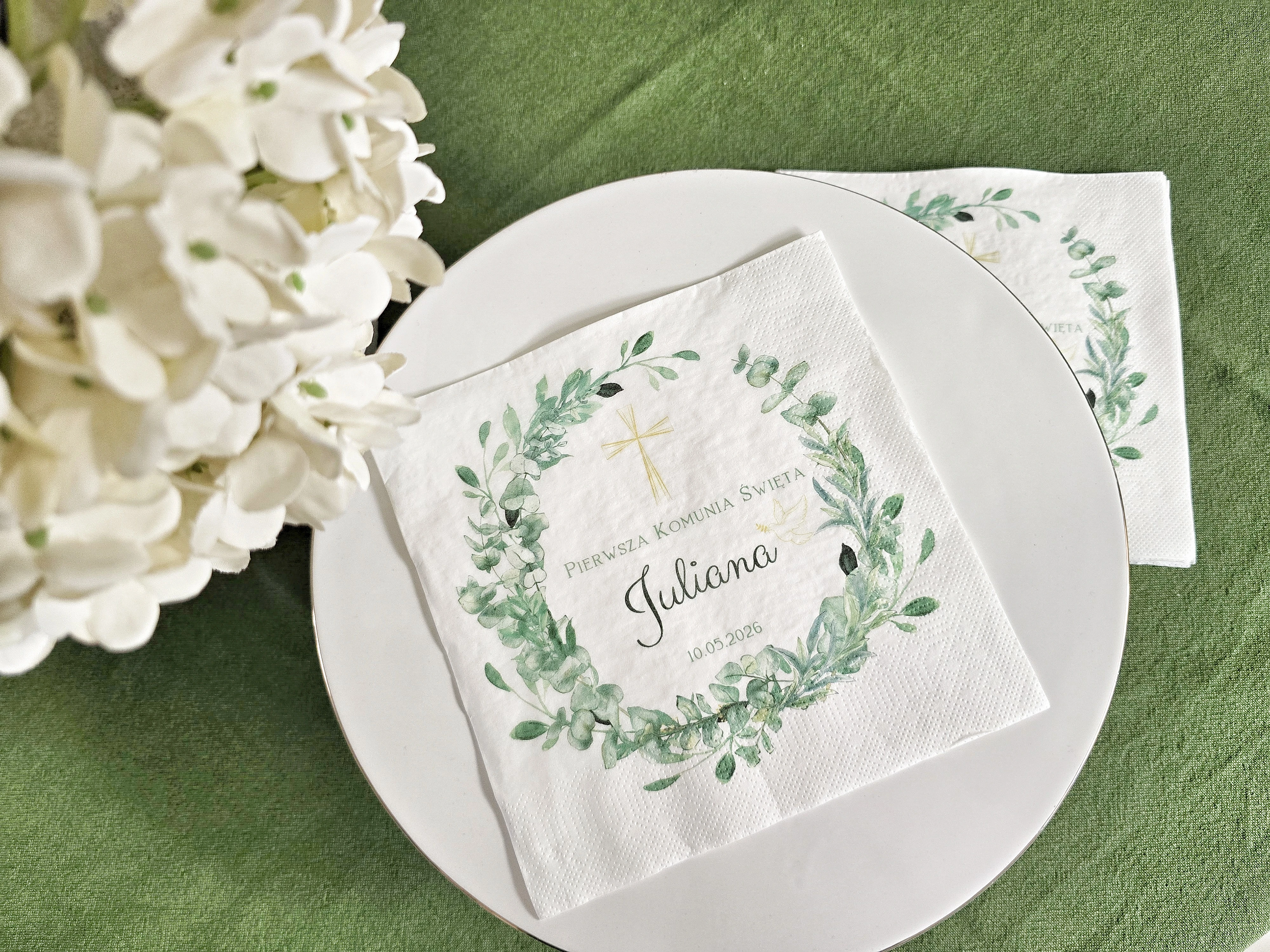 Serwetki personalizowane na Komunię personalizowane z imieniem dziecka