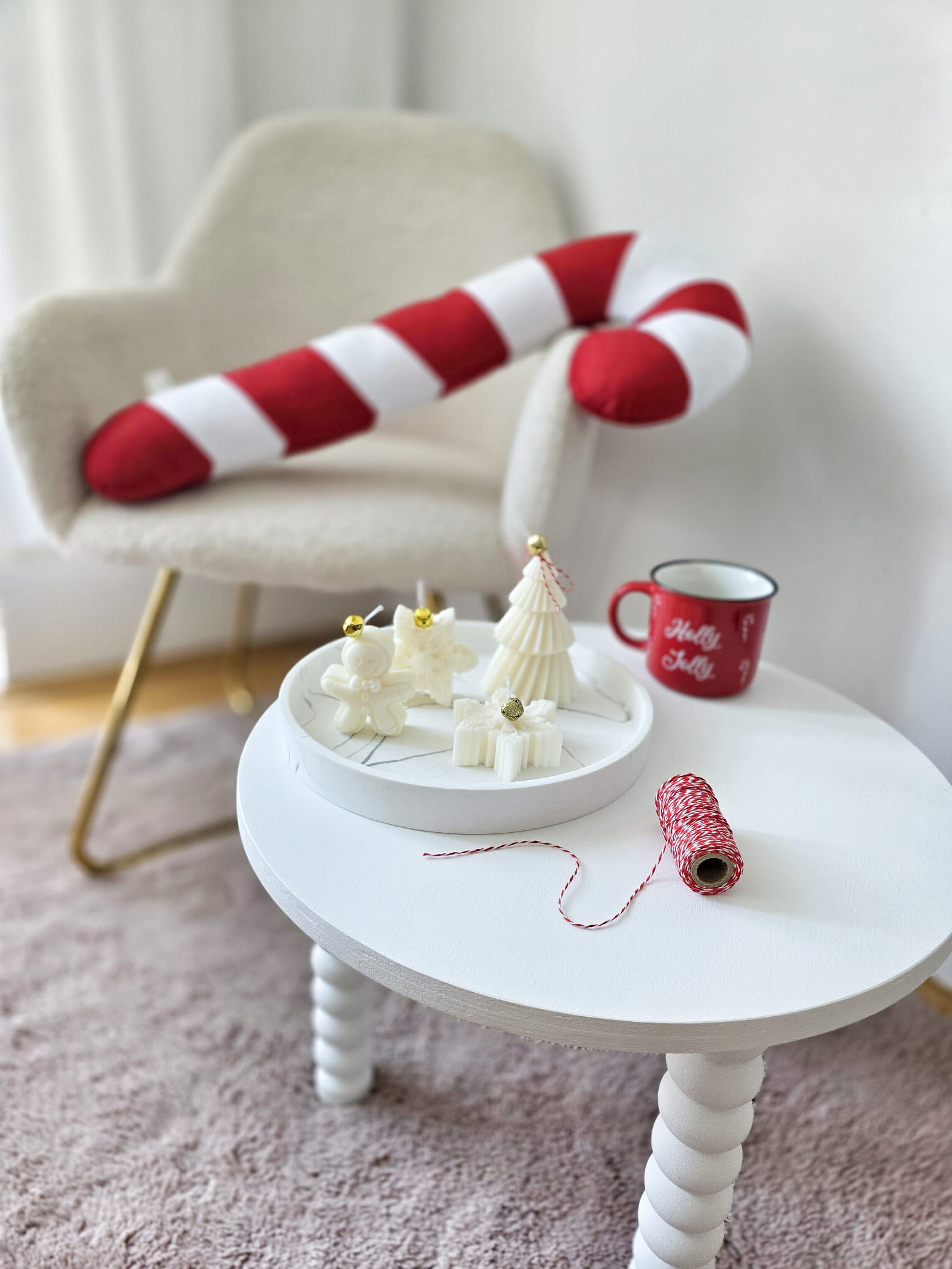 Stolik z toczonymi ozdobnymi nóżkami wykonany z drewnianej sklejki sosnowej z nóżkami z drewna sosnowego.