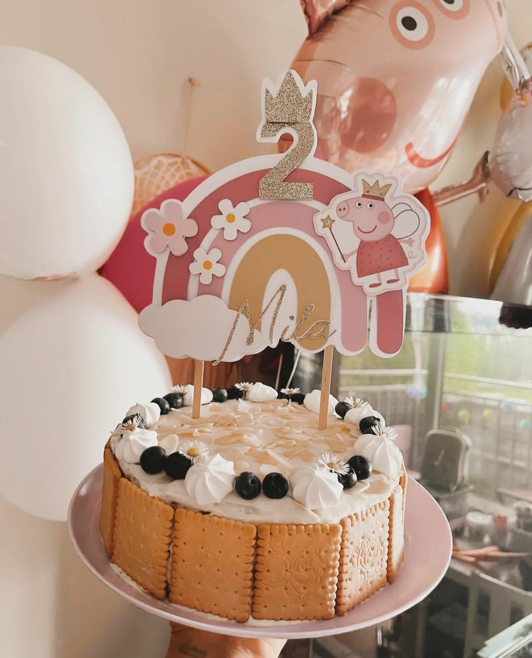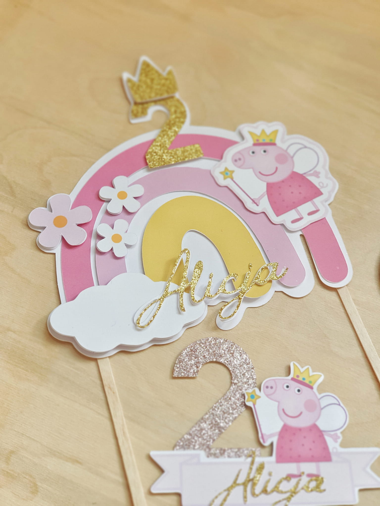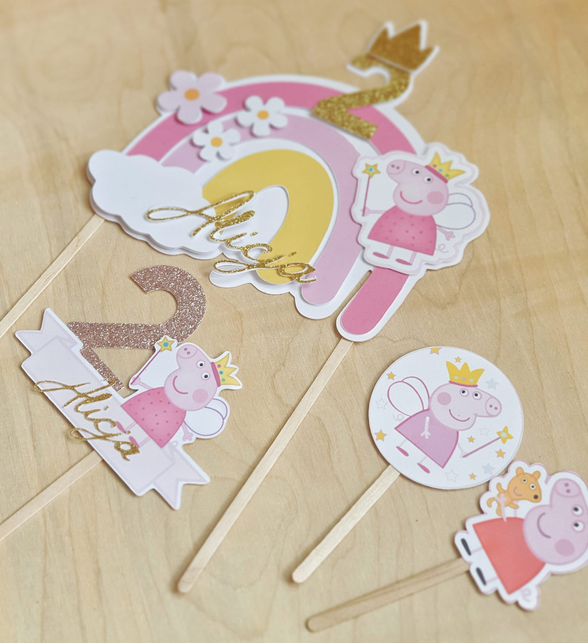 Topper tęcza świnka Peppa z imieniem duży na tort