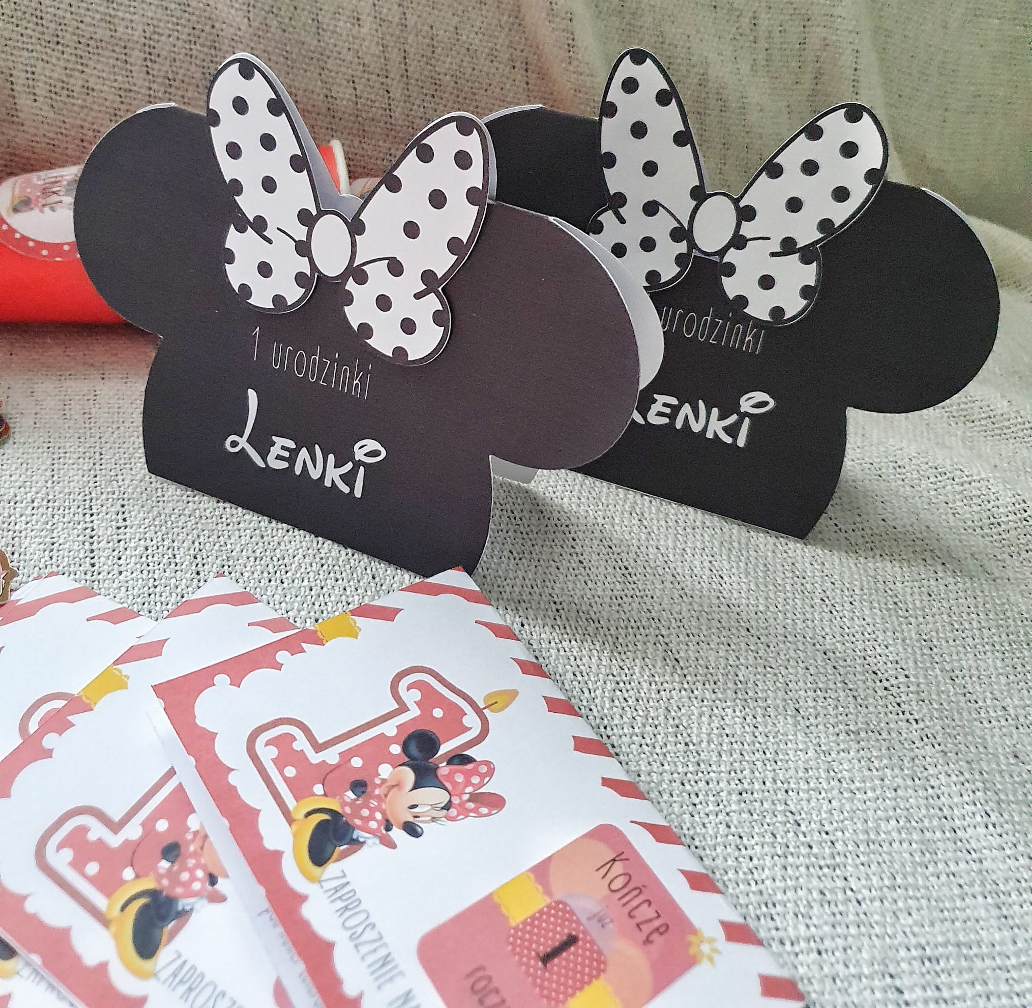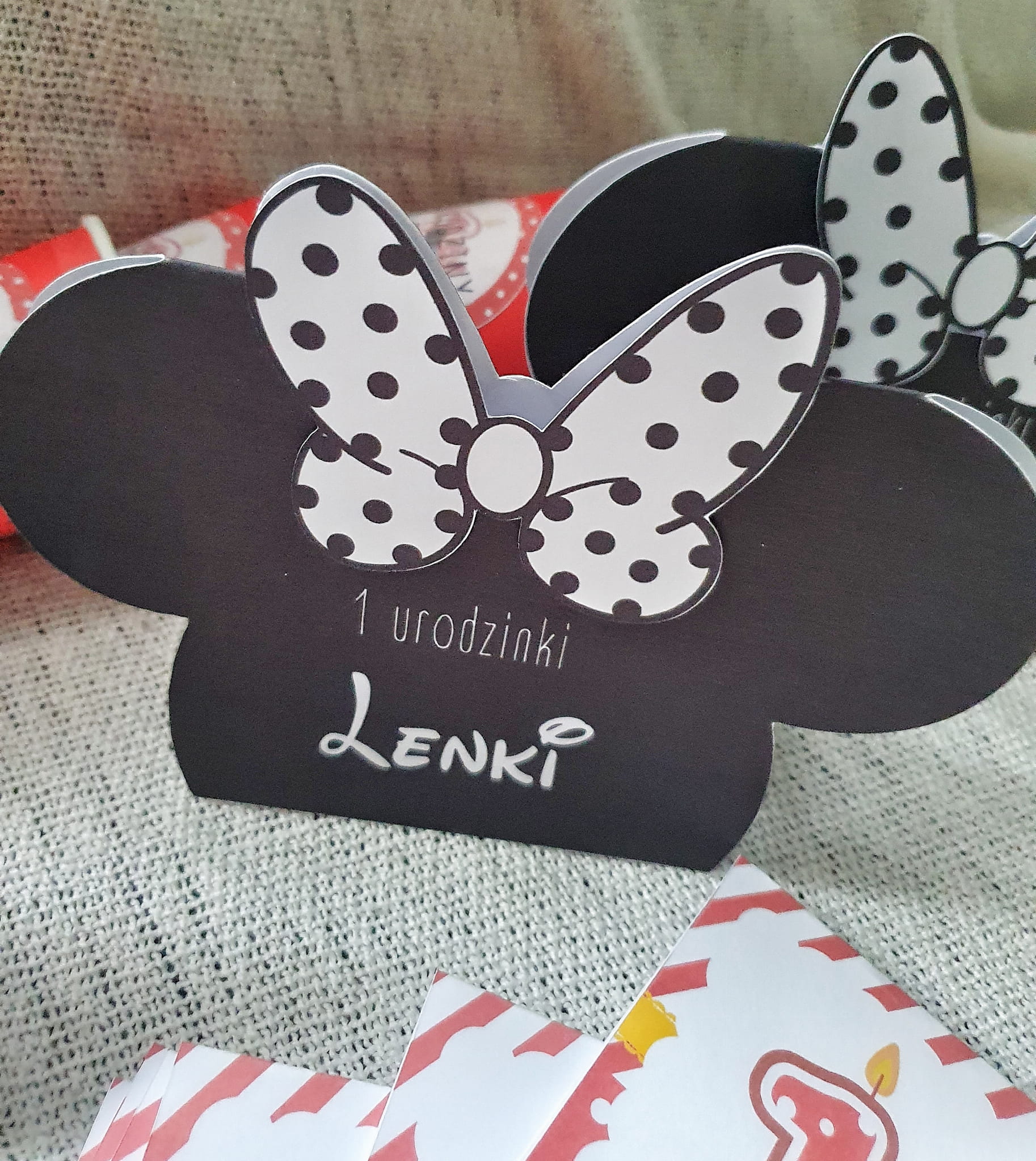 Duża winietka na stół w kształcie Myszki Minnie z kokardą