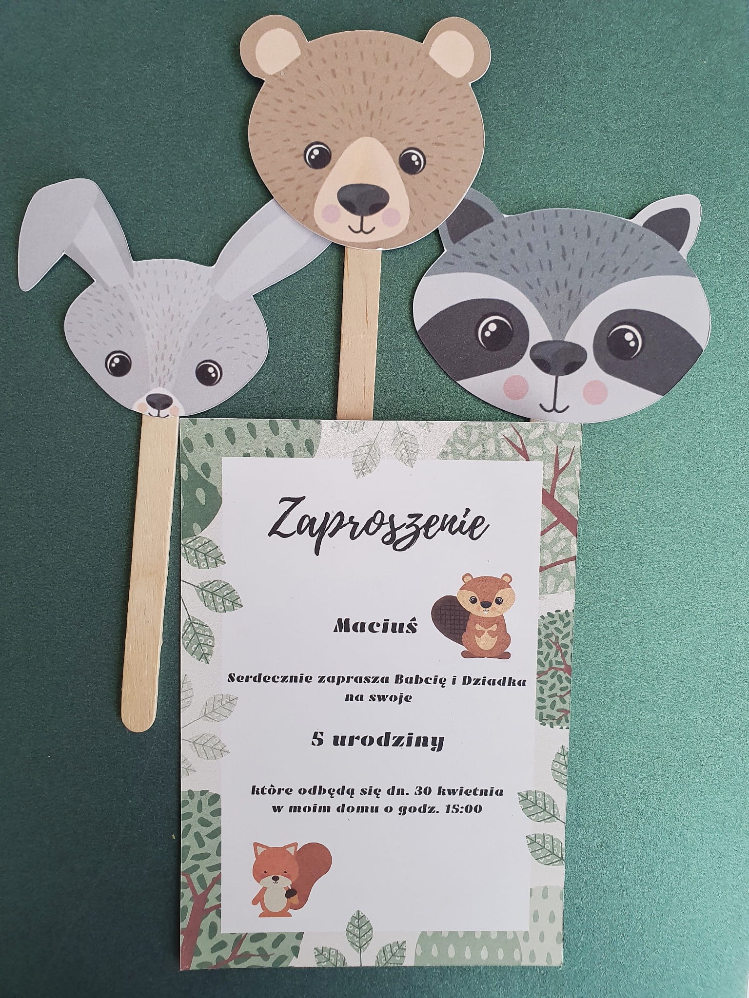 Zaproszenie z motywem Zwierzątek leśnych